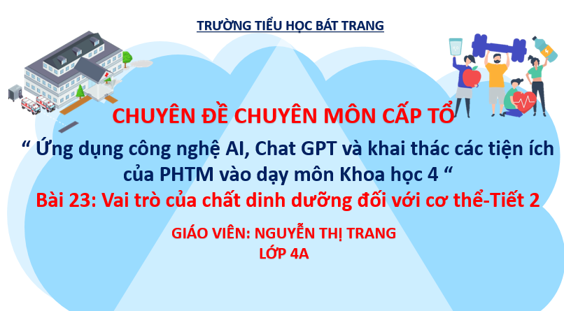 🍀Thực hiện kế hoạch nhiệm vụ chuyên môn năm học 2024-2025, ngày 26 /2/2025 tổ 4 thực hiện chuyên đề chuyên môn cấp tổ : “Ứng dụng công nghệ AI, Chat GPT và khai thác các tiện ích của PHTM vào dạy môn Khoa học lớp 4" Bài 23: Vai trò của chất dinh dưỡng đối với cơ thể (Tiết 1) do cô giáo Nguyễn Thị Trang và các em học sinh lớp 4A thực hiện đạt hiệu quả cao.