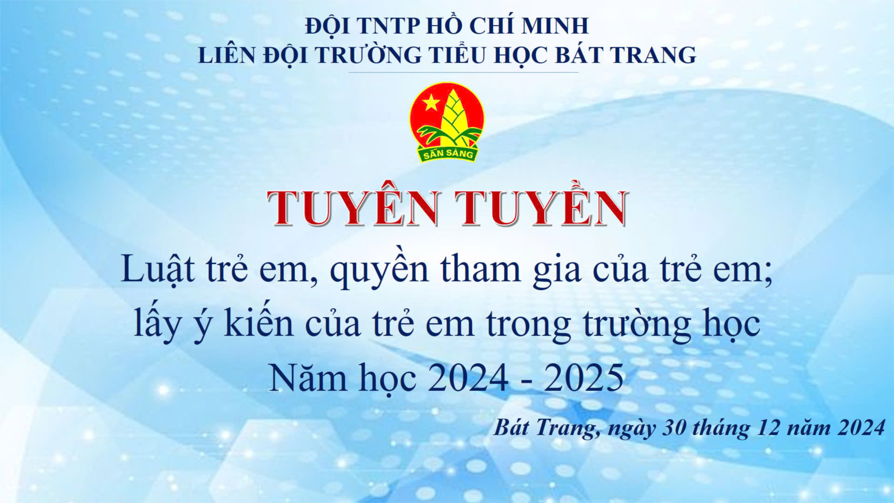 💥Thực hiện chương trình công tác Đội và phong trào thiếu nhi năm học 2024-2025, Liên đội trường Tiểu học Bát Trang tổ chức hoạt động tuyên truyền về "Luật trẻ em, quyền tham gia của trẻ em, lấy ý kiến của trẻ em trong trường học nhằm: