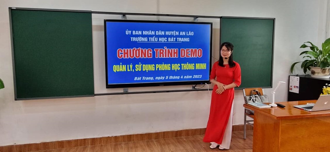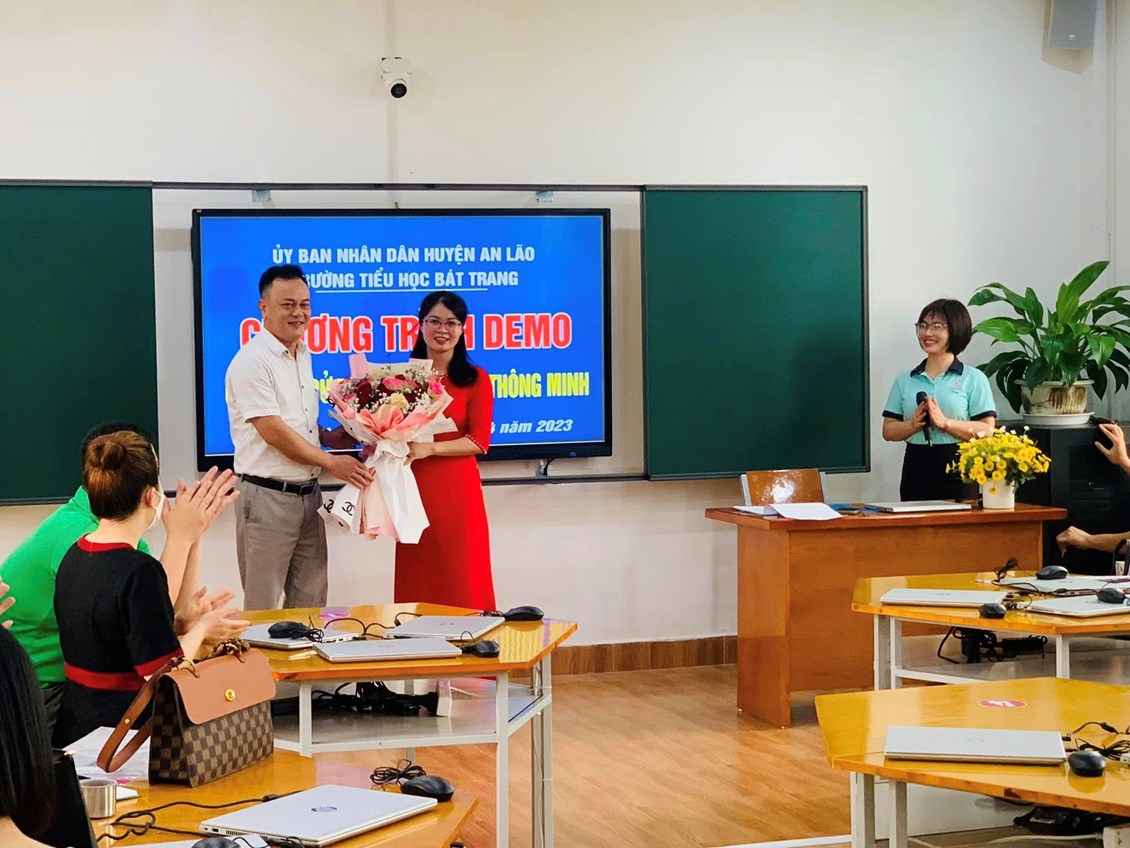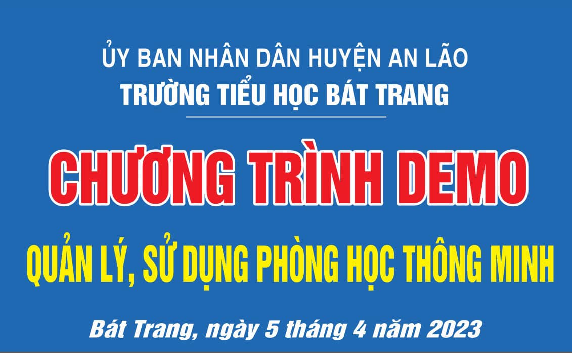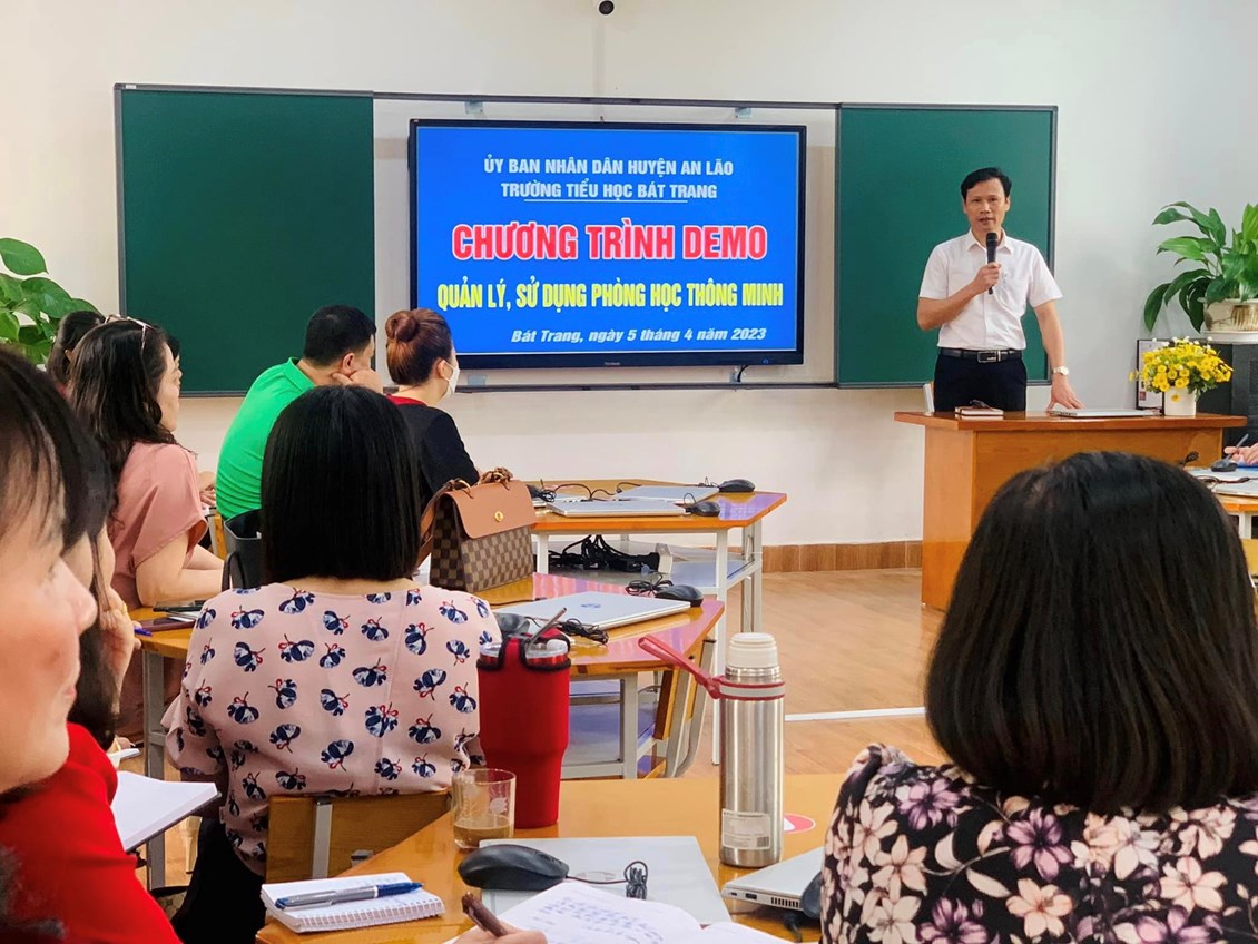Thực hiện Kế hoạch số 142/KH-GD&ĐT ngày 13/7/2022 của Phòng GD&ĐT về Kế hoạch thực hiện chuyển đổi số ngành Giáo dục huyện An Lão giai đoạn 2021-2025, định hướng đến năm 2030; Kế hoạch số 57/KH-GD&ĐT ngày 14/3/2023 của Phòng Giáo dục và Đào tạo về thực hiện nhiệm vụ trọng tâm 2023. Phòng Giáo dục và Đào tạo đã chỉ đạo trường Tiểu học Bát Trang xây dựng chương trình Demo về quản lý và sử dụng phòng học thông minh, làm căn cứ đánh giá và tham mưu đầu tư xây dựng phòng học thông minh trên địa bàn huyện. Đến dự chương trình có các đại biểu: Đ/c Nguyễn Mạnh Thắng – Phó chủ tịch UBND huyện; Lãnh đạo, chuyên viên Phòng Giáo dục và Đào tạo; Lãnh đạo Phòng Tài chính - kế hoạch; Đại diện phòng Văn hóa thông tin huyện; Thường trực Đảng ủy – HĐND - UBND xã Bát Trang; Các đ/c Hiệu trưởng, 01 giáo viên lớp 5 các trường Tiểu học, trường TH&THCS; Đ/c Hiệu trưởng các trường THCS: Bát Trang, Lương Khánh Thiện, Mĩ Đức, Tân Dân, Tân Viên; Ban đại diện cha mẹ học sinh trường Tiểu học Bát Trang; Đại diện công ty TNHH đầu tư phát triển Trọng Tín - Đơn vị lắp đặt các thiết bị phòng học thông minh.