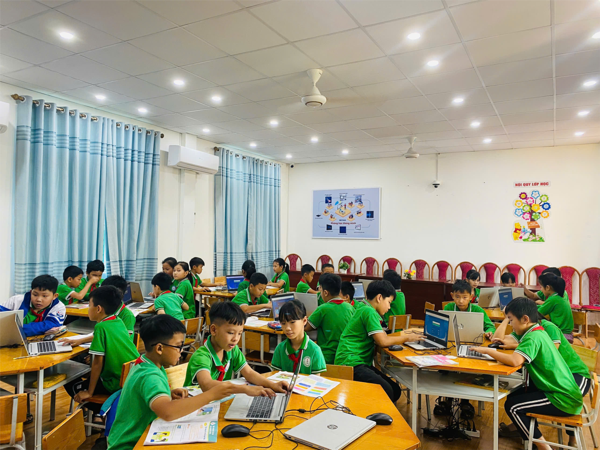 Trong tiết học Đạo đức ở phòng học thông minh, học sinh được thực hành khai thác nội dung bài học thông qua các ứng dụng tương tác trên màn hình lớn. Các em được tạo một tâm thế vui vẻ, hào hứng qua video bài hát phần khởi động. Bên cạnh đó những video, hình ảnh sắc nét, chân thực giúp các em dễ dàng hình dung về các tình huống thực tế trong cuộc sống thực. Các em học sinh còn được tham gia các trò chơi trực tuyến Quizziz. Điều này không chỉ làm tăng hứng thú học tập mà còn giúp học sinh ghi nhớ bài học lâu hơn. Đặc biệt, việc sử dụng các công cụ công nghệ để thực hành xử lý các tình huống đặt ra trong thực tế khiến các em học sinh cảm thấy tự tin hơn trong cuộc sống hàng ngày.