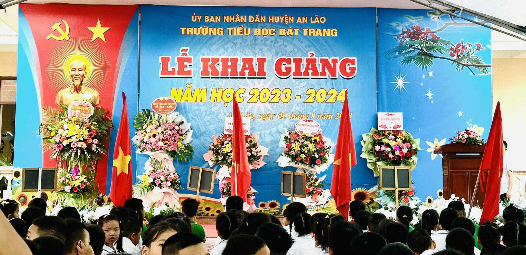 Hôm nay hoà chung không khí toàn Đảng, toàn dân thi đua lập thành tích chào mừng 78 năm cách mạng tháng Tám và quốc khánh 2- 9. Chào mừng thành công lễ kỉ niệm 35 năm ngày Tái lập huyện An Lão (8/8/1988 – 8/8/2023). Cùng với không khí tưng bừng phấn khởi của ngày hội khai trường trên cả nước thầy và trò trường Tiểu học Bát Trang An Lão tưng bừng đón chào năm học mới.