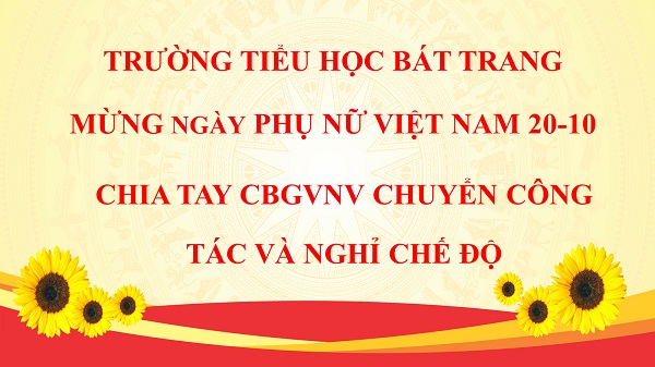 Nhân dịp kỉ niệm 91 năm ngày Phụ nữ Việt Nam, BGH- BCHCĐ trường Tiểu Học Bát Trang kết họp tổ chức buổi mít tinh nhằm ôn lại truyền thống của phụ nữ Việt, ghi nhận sự cố gắng của chị em trong trường, động viên chị em vượt qua khó khăn hoàn thành tốt nhiệm vụ.