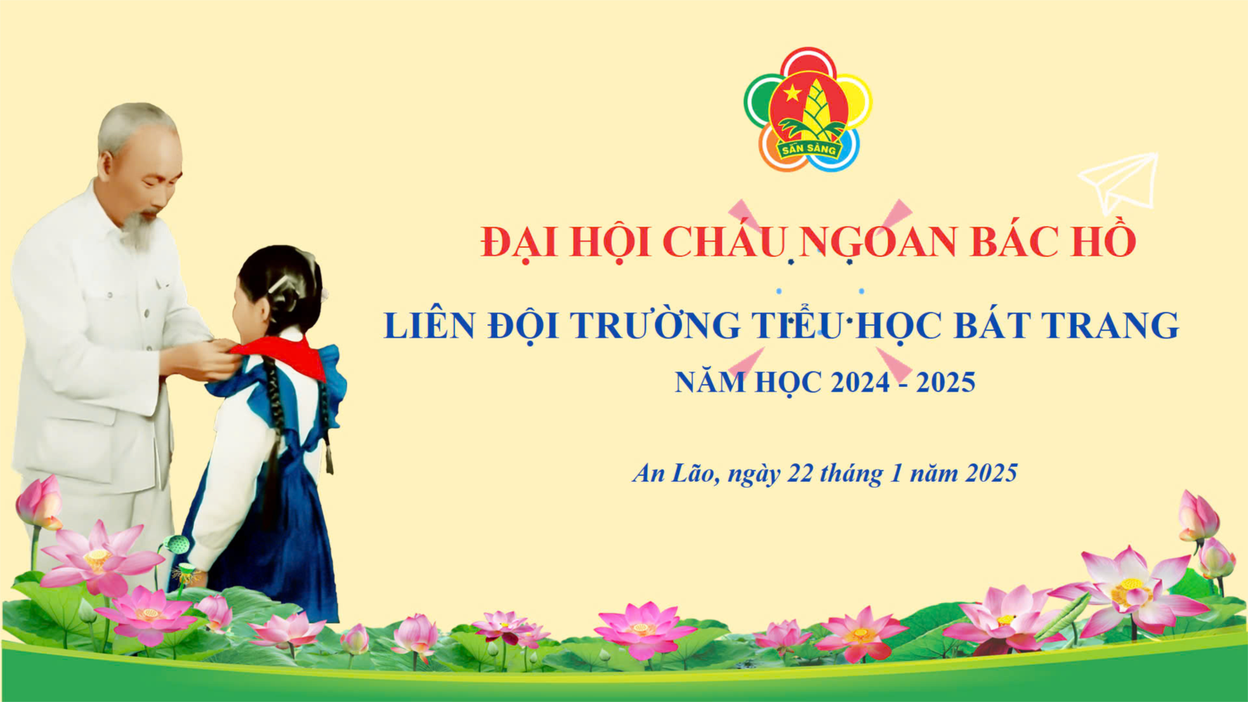 Thực hiện chương trình công tác Đội và phong trào Thiếu nhi, được sự chỉ đạo của của Hội đồng Đội huyện An Lão, Ban giám hiệu trường TH Bát Trang, chiều ngày 22/ 01/ 2025, Liên đội trường Tiểu học Bát Trang long trọng tổ chức “Đại hội Cháu ngoan Bác Hồ”năm học 2024-2025 nhằm tôn vinh những cá nhân xuất sắc trong học tập và rèn luyện. Đây còn là dịp để các em học sinh hiểu được sâu sắc hơn tình cảm của Bác với thiếu nhi và Liên đội báo công dâng Bác, từ đó các em học sinh xác định được mục tiêu phấn đấu trong học tập, rèn luyện để trở thành con ngoan, trò giỏi, đội viên tốt, cháu ngoan Bác Hồ.