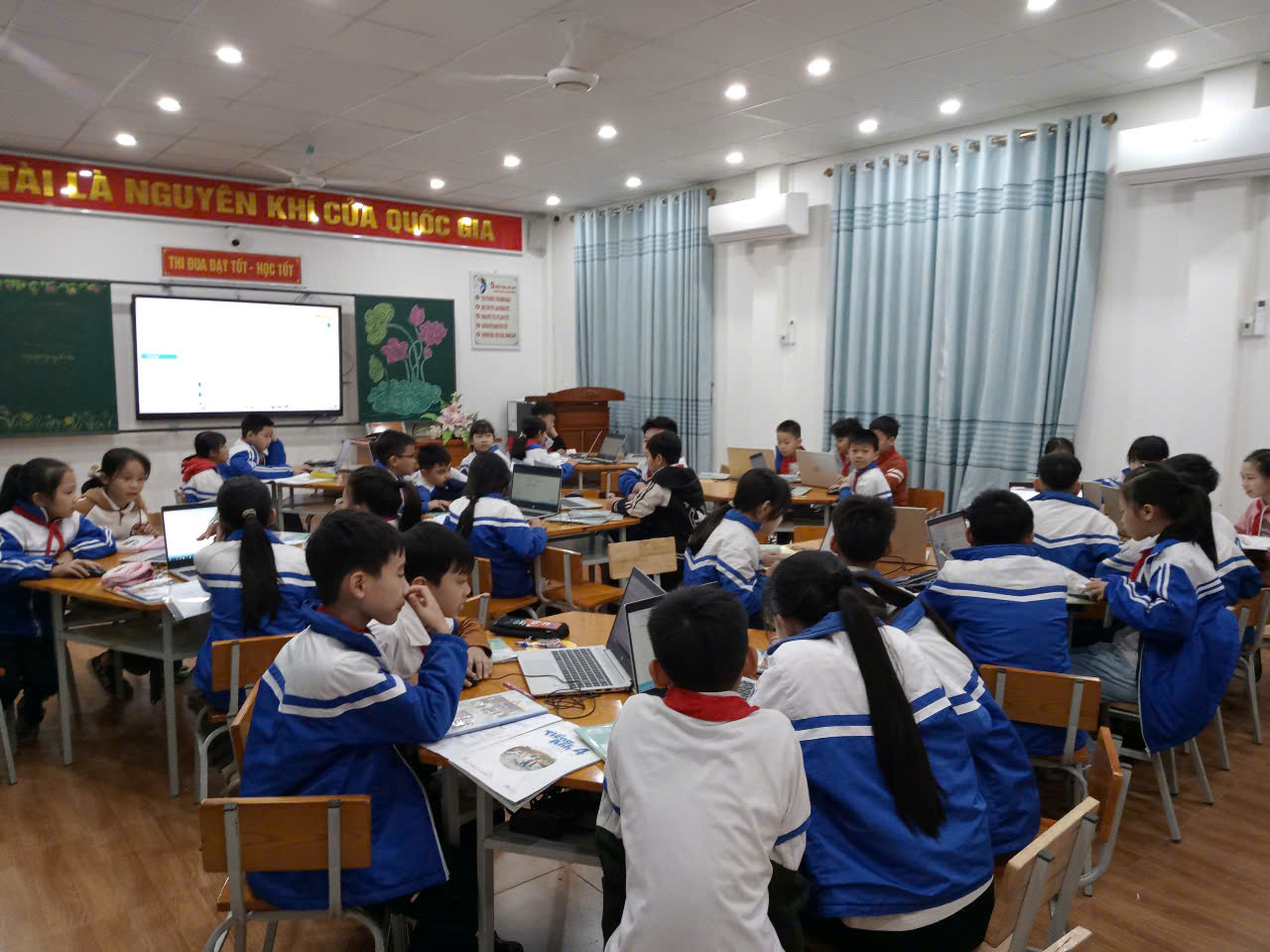 🌱Thông qua tiết học các em học sinh được tham gia nhiều hoạt động, rèn luyện được nhiều kĩ năng, luôn hứng thú với các tiết học, biết chủ động nắm bắt kiến thức. Bên cạnh đó tiết học tại phòng học thông minh không chỉ giúp các em nâng cao trình độ tiếng Anh mà còn phát triển kỹ năng số - một kỹ năng quan trọng trong thời đại công nghệ hiện nay. Tiết học diễn ra sôi nổi, nhẹ nhàng, đạt hiệu quả cao.